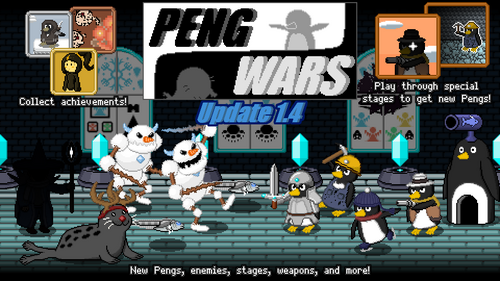 Peng Wars 1.4 is out! This update adds lots of new Pengs, enemies, and stages, alongside achievements and rewards for collecting them. It also introduces the Parallel Pengiverse — once you've gone far enough in the Pengiverse, you can get all stars in a Pengiverse subchapter to unlock its Parallel counterpart, with new and stronger foes! Finally, you can equip your Peng Base with new weapons to handle tough enemies!